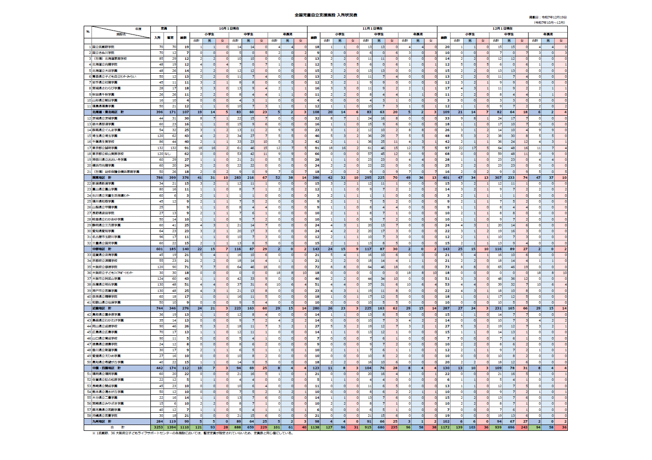 地区別児童入所状況